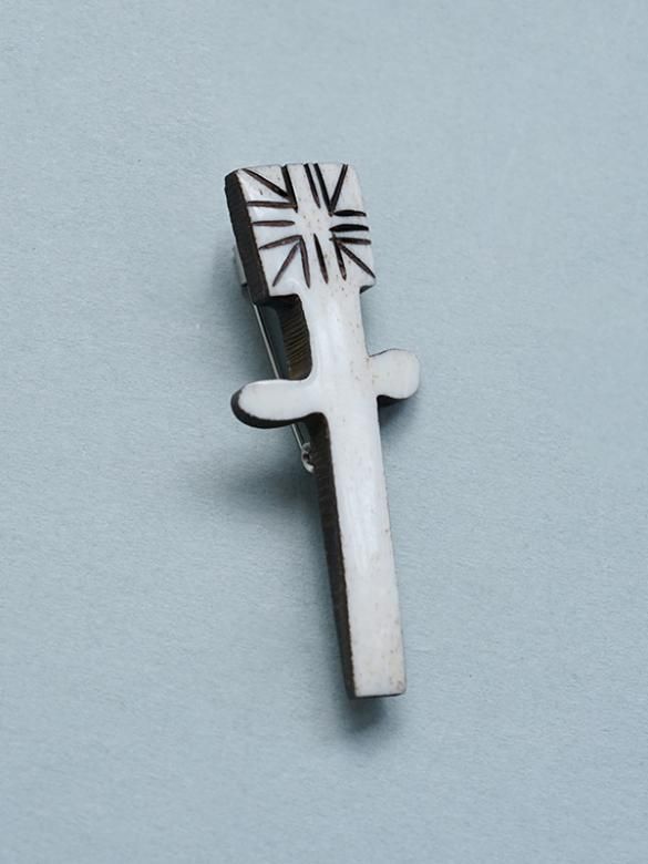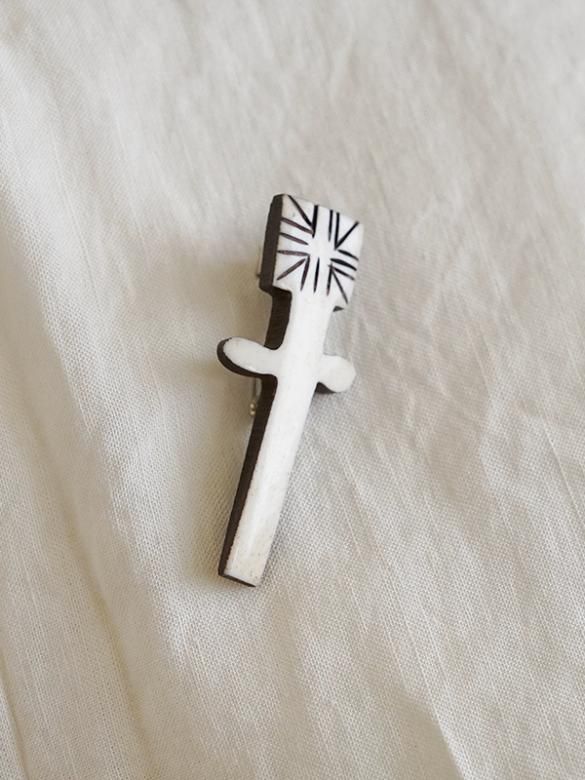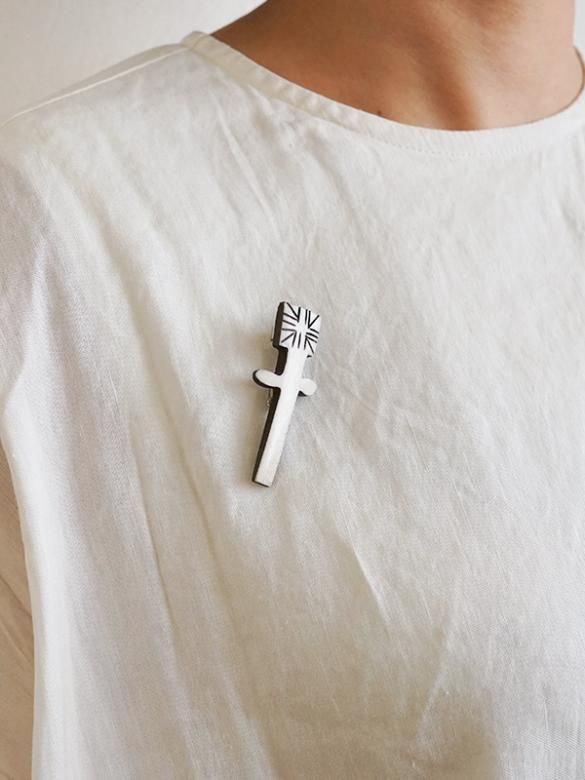「BROOCH ROSE WH」は、オフホワイトのベースに黒色で彫り加工がされています。