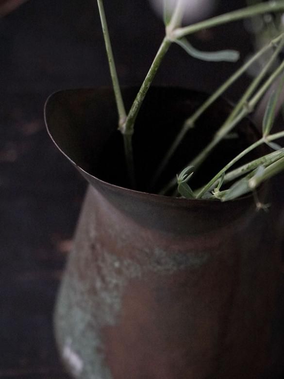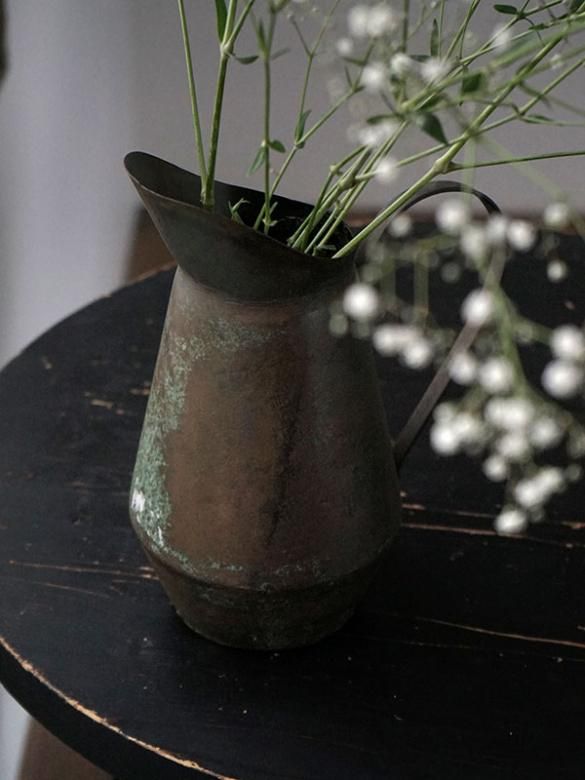 アイアンに特殊な加工を施し、古びたアンティークのように仕上げたフラワーベースです。ひとつひとつ風合いが異なるので、いくつか並べても画一的ではない、味のある雰囲気を醸し出します。