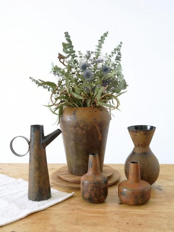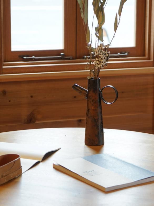 個性的なフォルムのジャグ。錆びた鉄の加工を施しており、経年加工を施した鉄の風合いを楽しんでいただけます。ドライフラワーと合わせるのはもちろん、単体で飾っても様になるアイテムです。