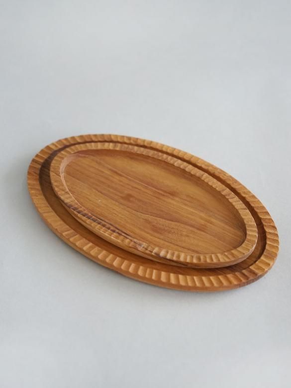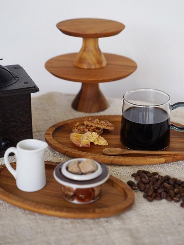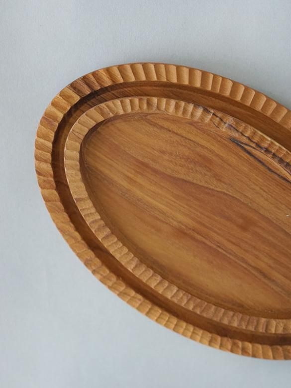 チーク材は油分を含んでいるため木肌が滑らかで水に強く、耐久性も高い特性があります。赤みがかった薄褐色の木肌は高級感があり、ナチュラルだけれど少しよそゆきの表情も見せてくれます。※表面オリーブオイル仕上げ。長くご愛用いただくために