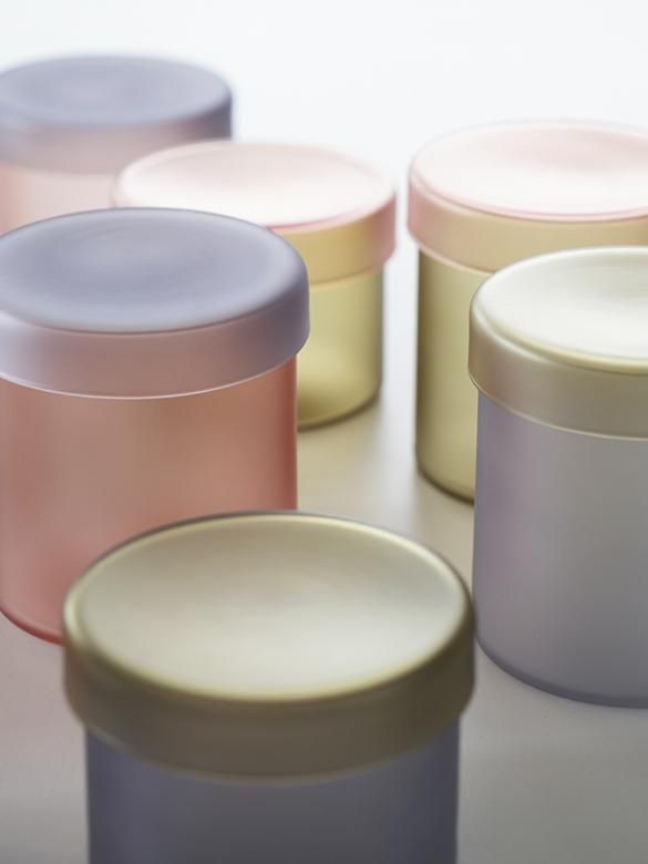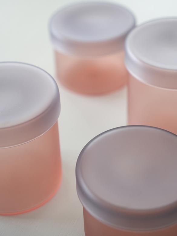 フロストガラスは内容物が見えすぎない、半透明の質感も特徴的。外側はマット、内側はツヤありなので、フタを開けた時のギャップもお楽しみ頂けます。フタ部分をアクセサリー置きとしてお使い頂いたり、シリーズの他アイテムとセットでお使い頂いたりと、ご自由にアレンジしてお楽しみください。