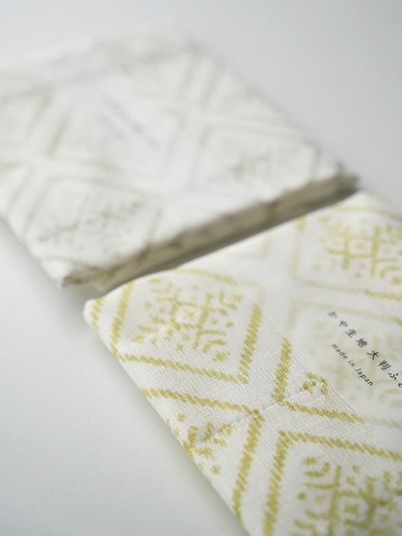 「大判かや生地ふきん フルーリー グレー」は、刺し子の図案をモチーフにした一枚。フルーリー=にわか雪の刺し子図案をアレンジした絵柄は、抑えたトーンのグレーカラーによってスタイリッシュに仕上げられています。