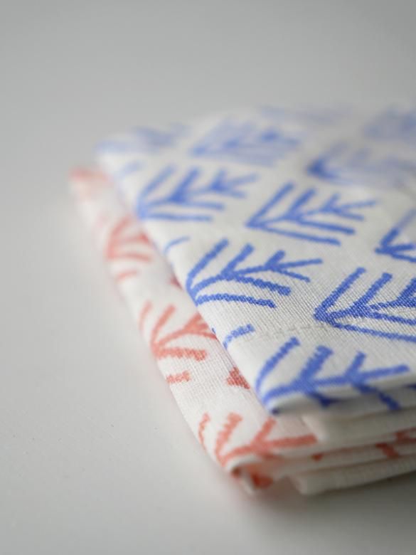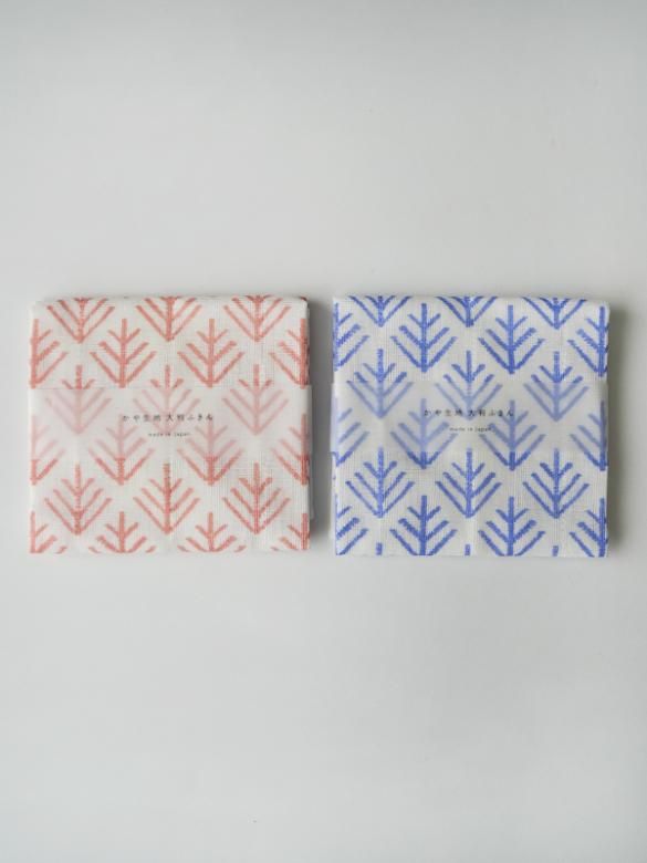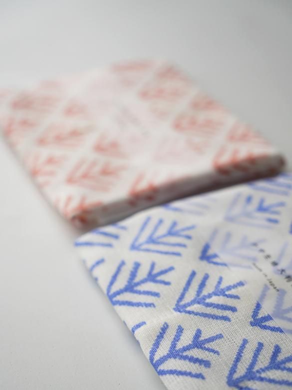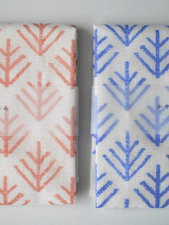 「大判かや生地ふきん コニファー ピンク」は、刺し子の図案をモチーフにした一枚。コニファー=針葉樹である笠松の刺し子図案をアレンジした絵柄は、優しげなサーモンピンクで可愛らしく仕上げられています。