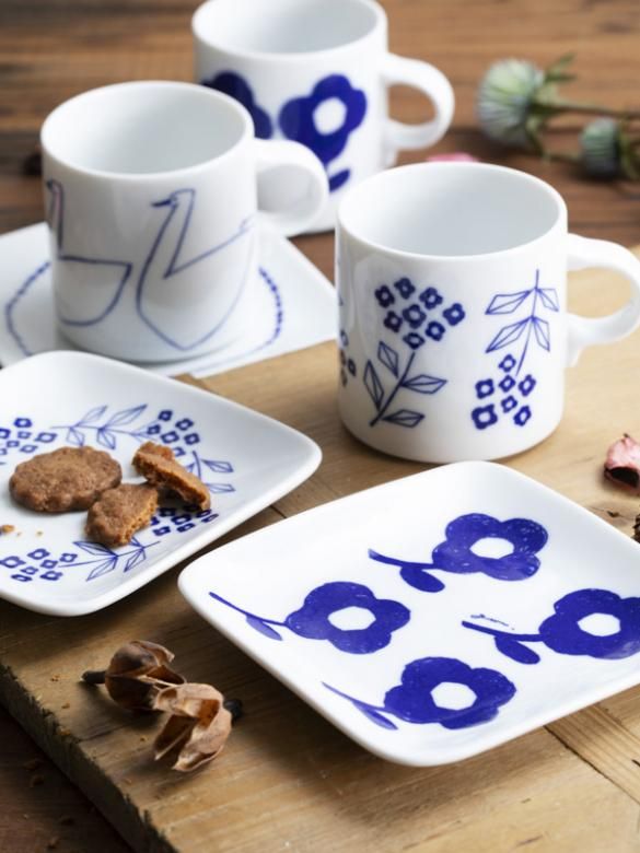 おおらかなタッチで描かれた野の花や白鳥を絵付けした、マグカップ&プレートシリーズです。