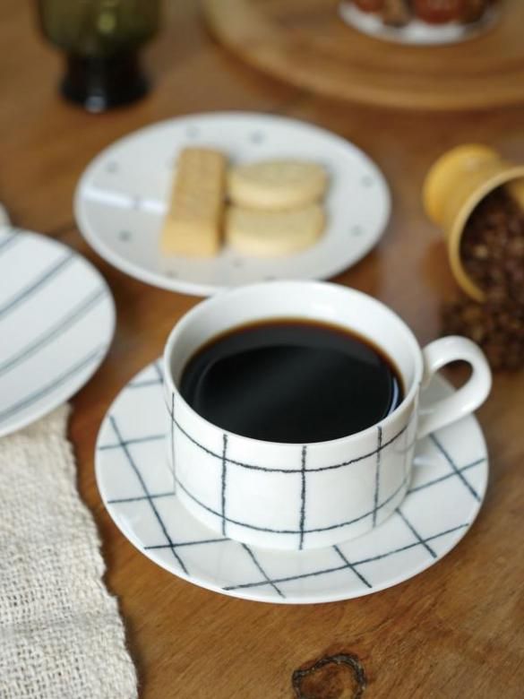 チェック、ドット、ストライプ。嬉しかったり、ぼんやりしたり、毎日揺れ動く心模様を映すようなカップ&プレートが登場しました。