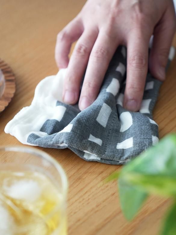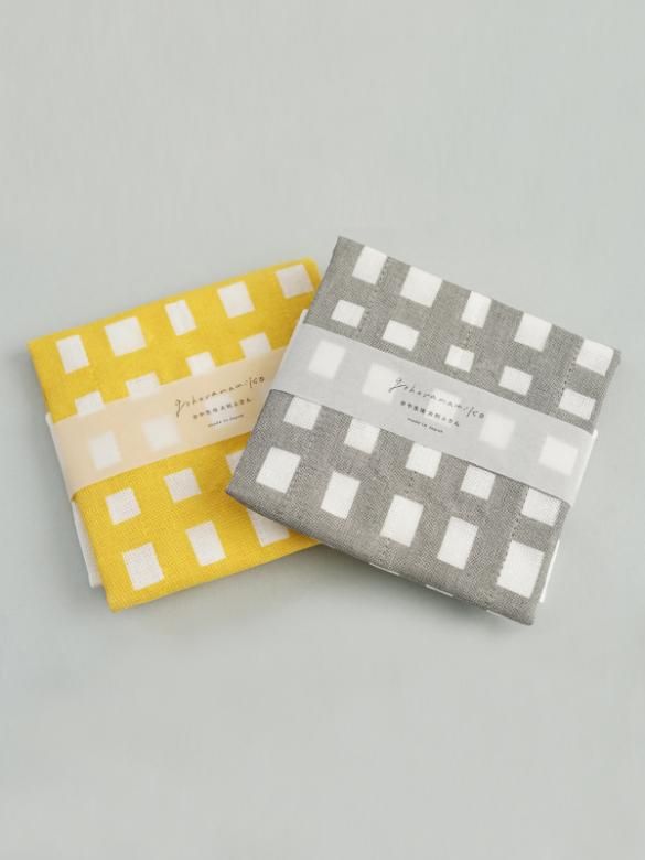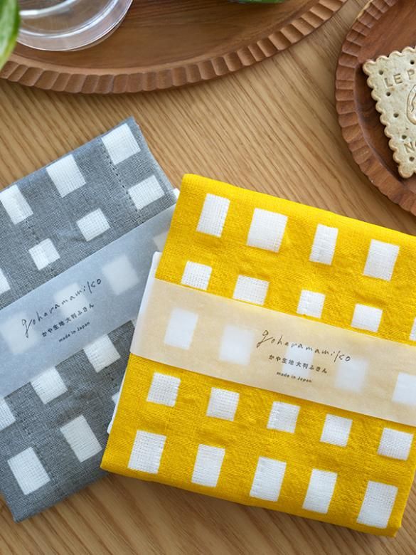 「大判かや生地ふきん チェック グレー」は、モノトーンのグレーが大人っぽい雰囲気。