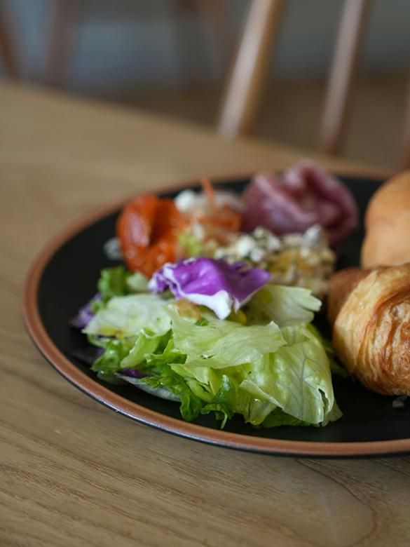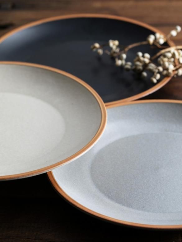 少し大きめのプレートはゆるやかにフチが立ち上がるデザインで、肉や魚料理、サラダ、朝食セットなどを乗せるのに良いサイズ感。