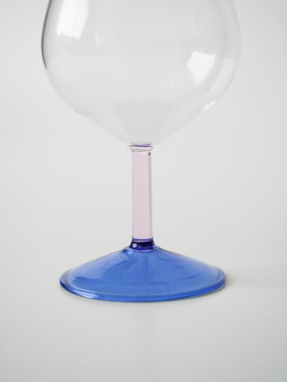 ボディ部分がクリアガラス、ステムがピンク色、台座が青色のコンビカラーです。
