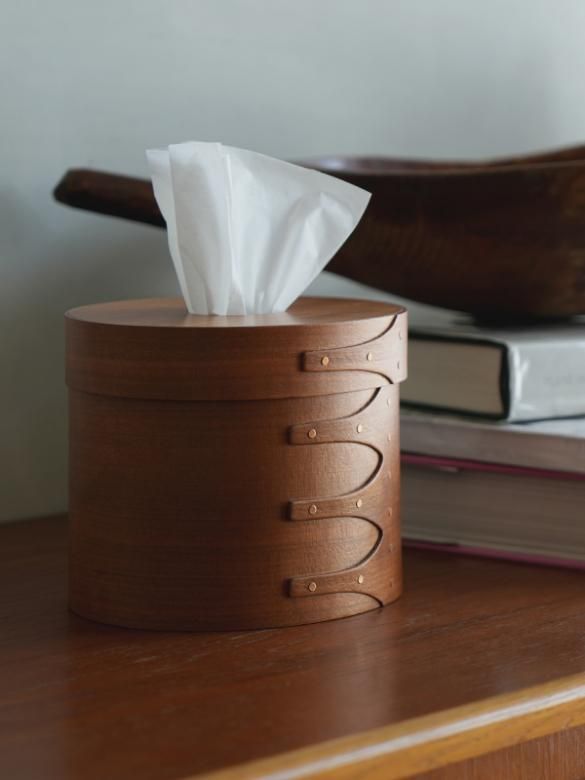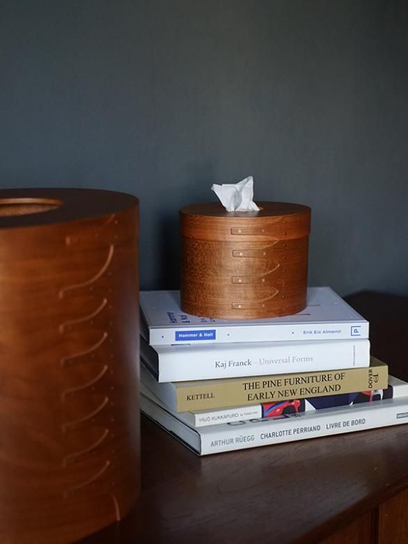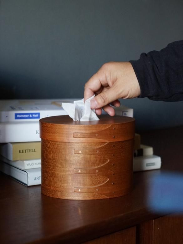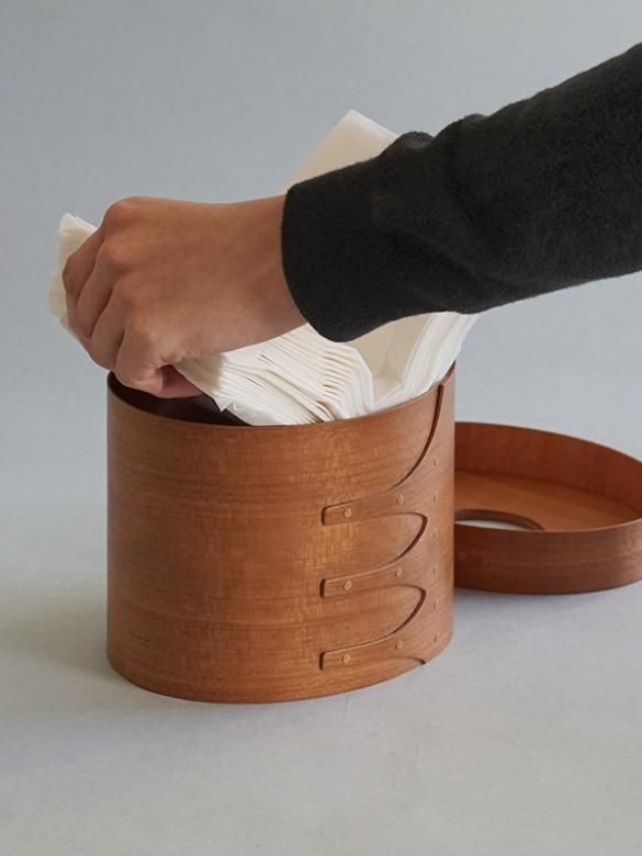 シェーカーボックスは薄い木材を曲げて作られる、シンプルな楕円型の木箱です。19世紀アメリカで自給自足の生活をした”シェーカー教徒”たちが道具として使った事で広く知られるようになりました。アクシスのシェーカーシリーズは、オリジナルシェーカーボックスのシンプルな美しさはそのままに、現代の日本の生活でも使いやすいサイズや機能性にこだわってお作りをしています。シェーカーダストボックス&ティッシュケース紹介動画はこちら
