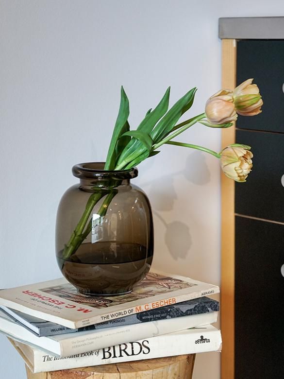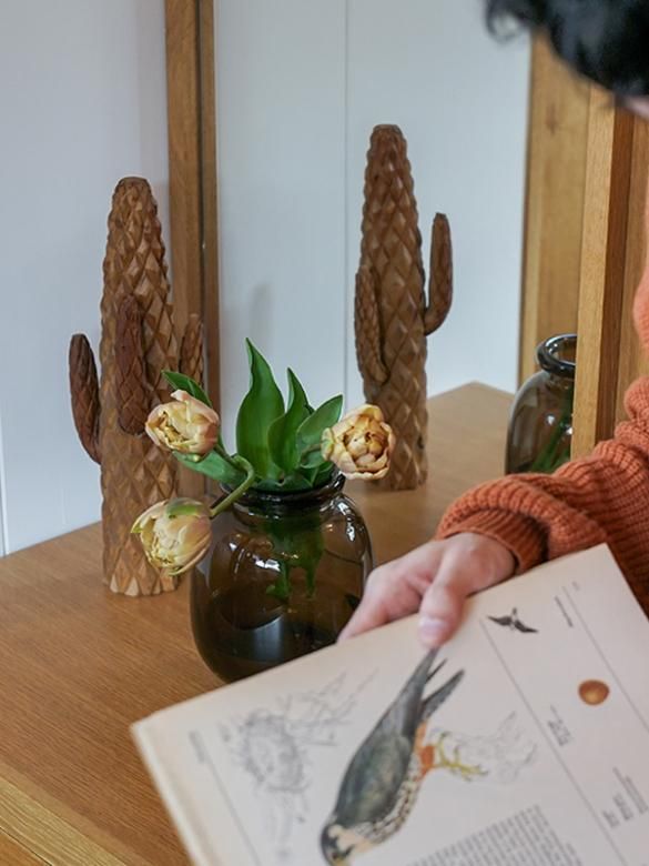 どっしりと重みがあって安定し、長さのあるグリーンや太めの枝ものもしっかり受け止めます。