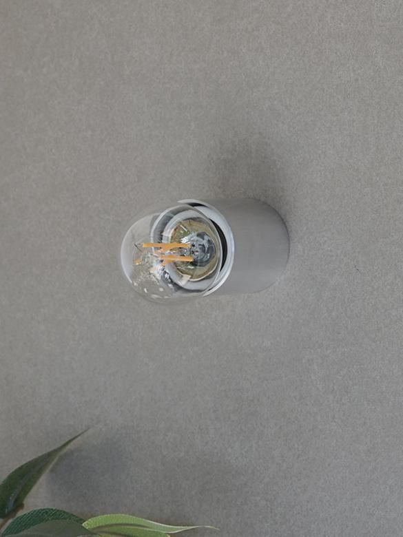 「Cylinder light」シリーズはシェードが付属していないため、電球を直接取り付けて使用します。電球の光が視界に入ると眩しく感じる可能性がありますので、設置される場所や、使用用途に適した明るさの電球をお選びください。「LEDボール型電球E26」などの少し大ぶりなボール型電球を合わせていただくと、バランスの良い見た目となります。