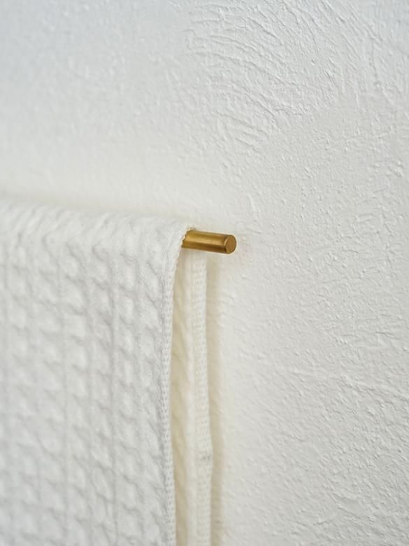 バーの片側を壁に取り付けるデザインなので、タオルをさっと掛けたり外したりする事ができます。
