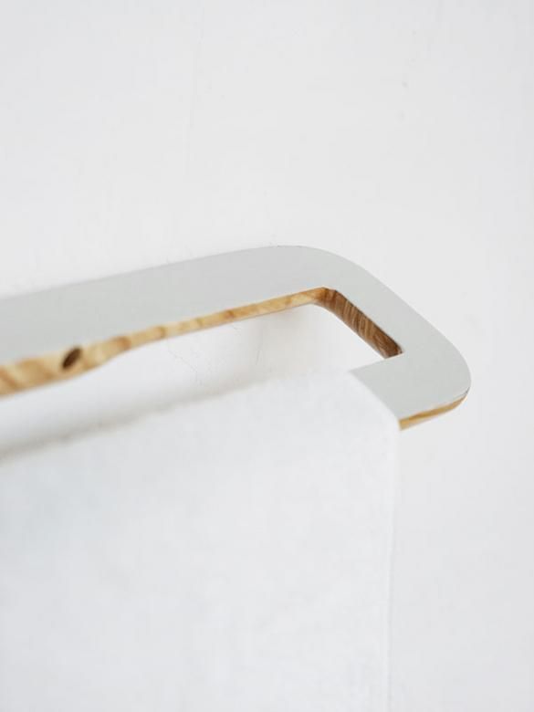 斜め下に突き出すデザインは、タオルを掛け外ししやすい構造。