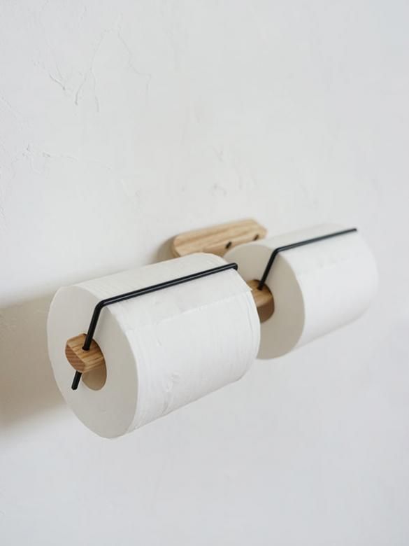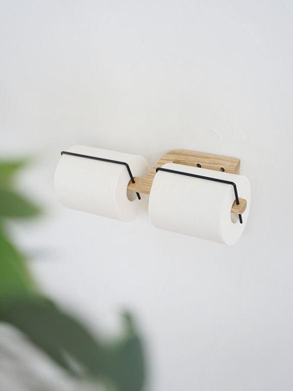「rum ペーパーホルダーダブル ナチュラル」は、デザイン性が高いトイレットペーパーホルダー。