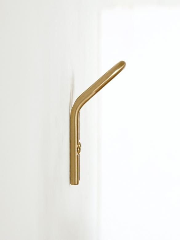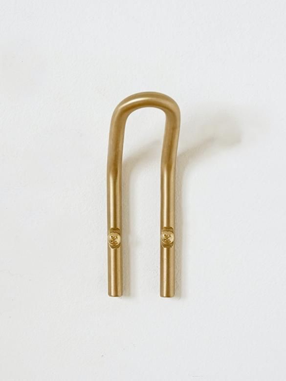 「ren ブラスUフック」は、壁にビスで取り付けるU字型フック。ピコっと壁から立ち上がるフックは、U字型なので洋服を掛けても生地を突きません。玄関やリビング、寝室、お手洗いなど色々な場所で活躍します。