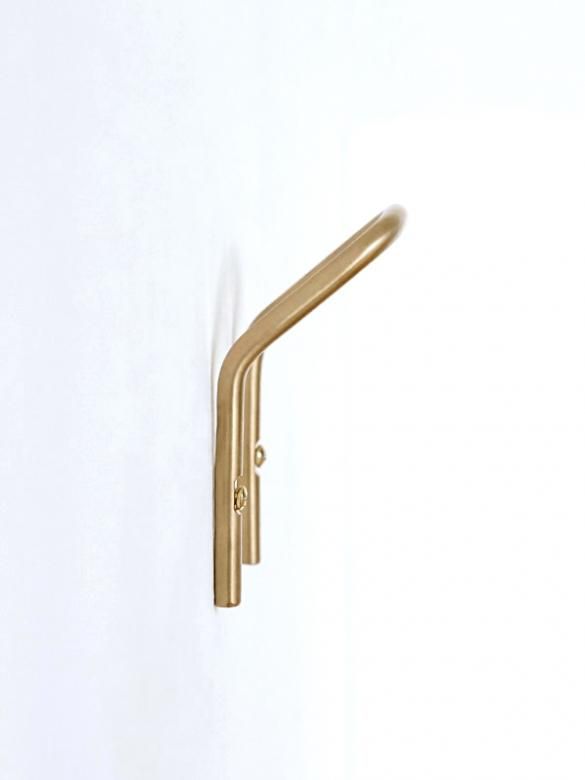 「ren ブラスUフック ワイド」は、壁にビスで取り付けるU字型フック。ピョコンと壁から立ち上がるフックは、幅広のU字型なので、上着など多少重さのある洋服を掛けてもOK。玄関やリビング、寝室、お手洗いなど色々な場所で活躍します。