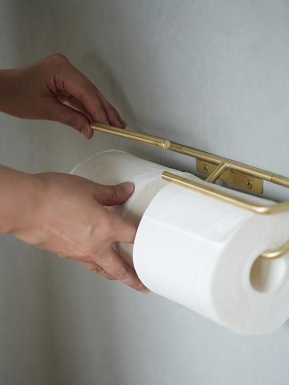 「KT brass paper holder W」は真鍮製のダブルタイプ・トイレットペーパーホルダー。