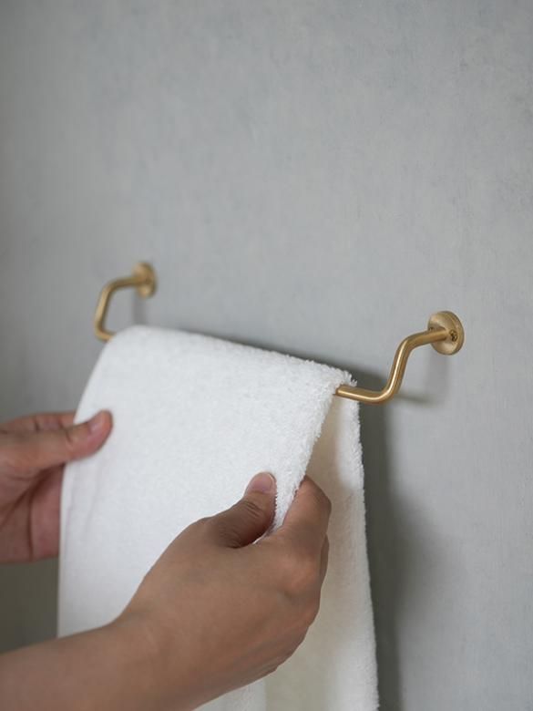 「KT brass towel holder S」は真鍮製のコンパクトサイズタオルホルダー。