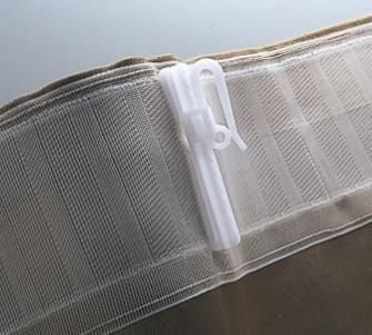 フラットカーテンに利用されるカーテンフックです。 フラットカーテンの表面にフックの跡が映らないので美しく仕上がります。