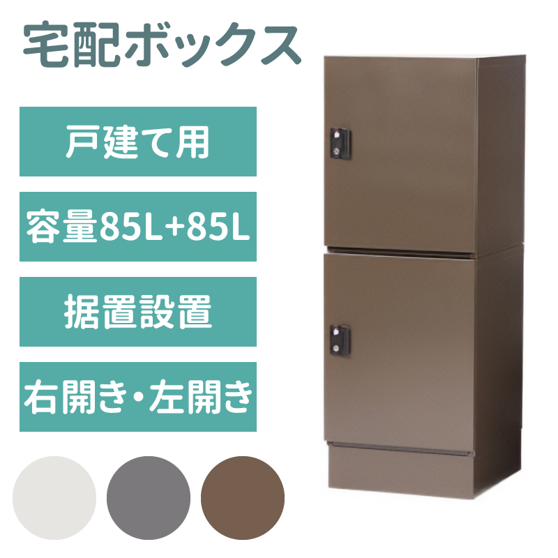 容量85リットルの大型宅配ボックスがついた2つセットになった便利な商品。雨にも錆にも強い、安心のモデルです。