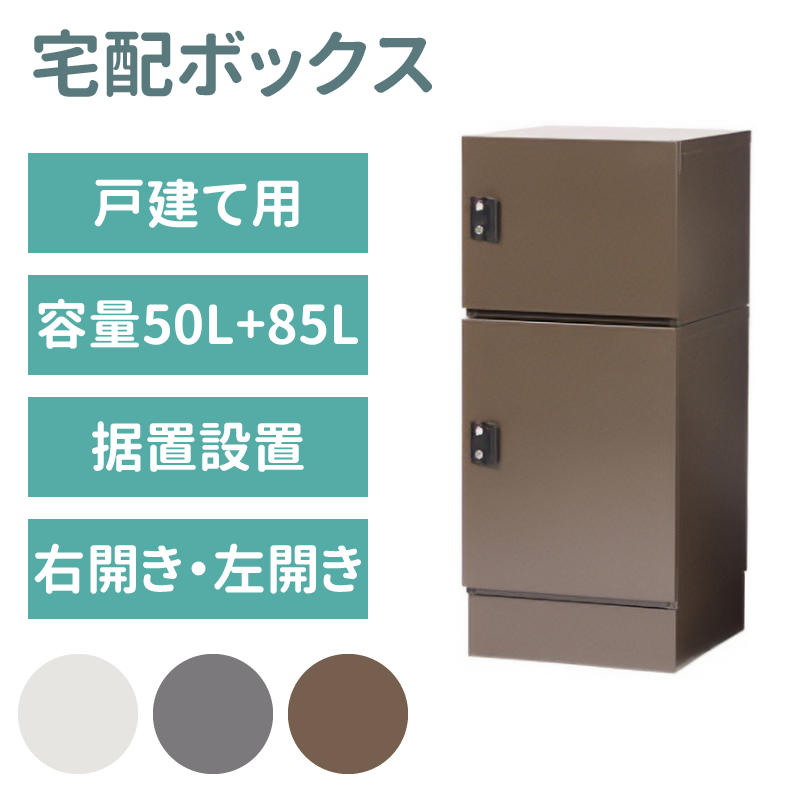 容量85リットルと50リットルの2つの宅配ボックスがセットになったモデル。ベース付きのフルセットで、不在時の受け取りをスマートにできます。