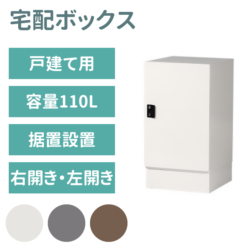 業界最大級の容量110リットルの宅配ボックスにベースを付けたモデル。日常の宅配からまとめ買いまで、安心して受け取れる頼れるサイズです。