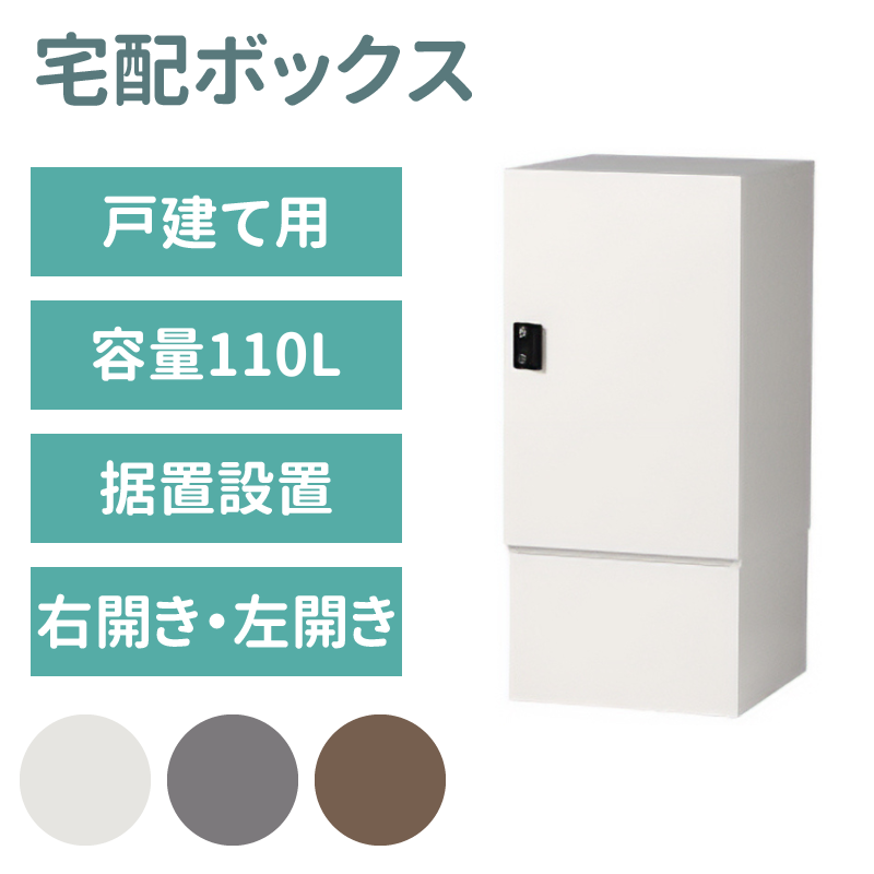 業界最大級の容量110リットルの宅配ボックスにベースを付けたモデル。日常の宅配からまとめ買いまで、安心して受け取れる頼れるサイズです。