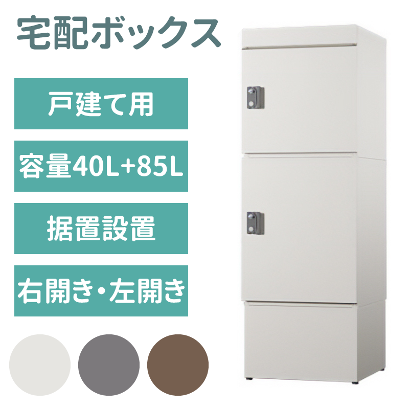 ポスト付きの85リットル宅配ボックスに40リットルの宅配ボックスを加えた充実モデルです。
