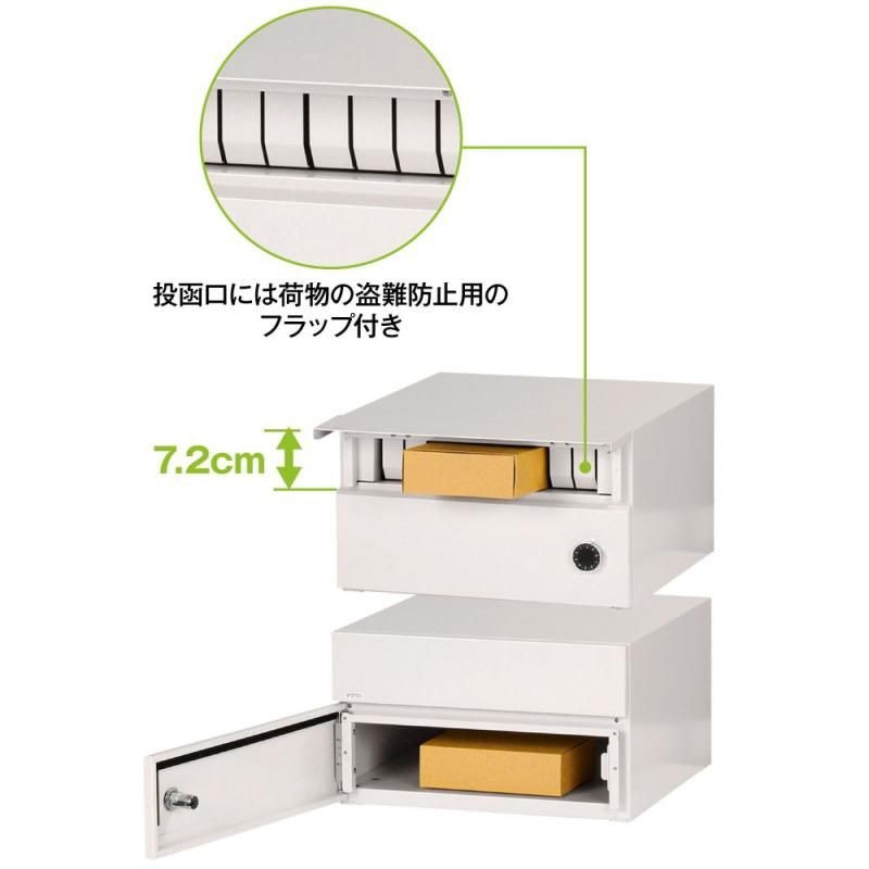 荷物を投函するとポスト口が内側に倒れ、抜き取りを防止するセキュリティー機能を備えています。