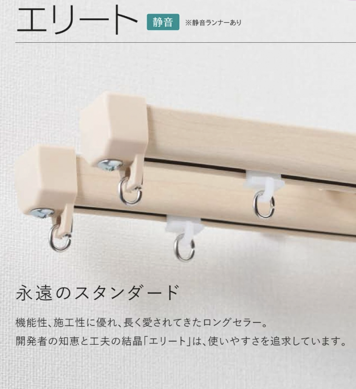 一般的なカーテンレールの溝幅は7mm程度ですが、本製品はそれよりも溝幅が狭いカーテンレールであるトーソー(TOSO)のエリートに対応しています。