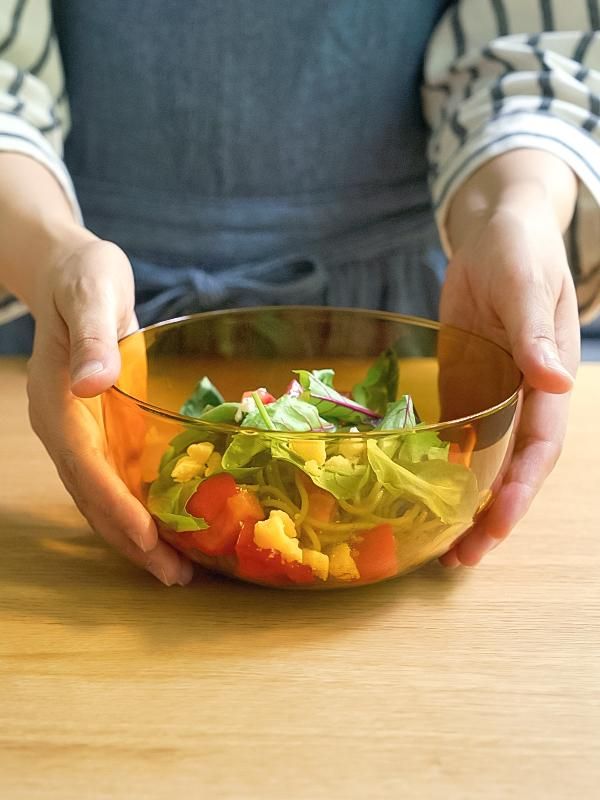 たっぷりのサラダ・冷麺・パスタ・素麺などを盛り付けるのにちょうどいい大きさです。