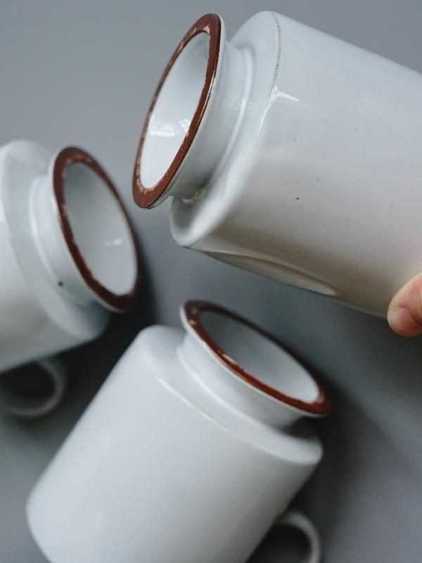 表面はグレーがかった艶のある白色、底部分裏側は素地が残る赤茶色をしています。
