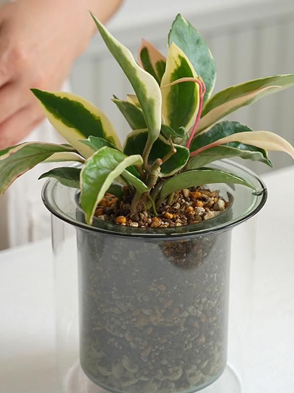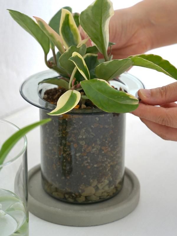 「PINOガラスプランター グレー」は、アウターベースはクリアガラス製・インナーベースはグレーのガラス製。落ち着いた色合いでモダンな印象を与えます。ガラス製ベースは土の層や根の具合をよく観察できます。