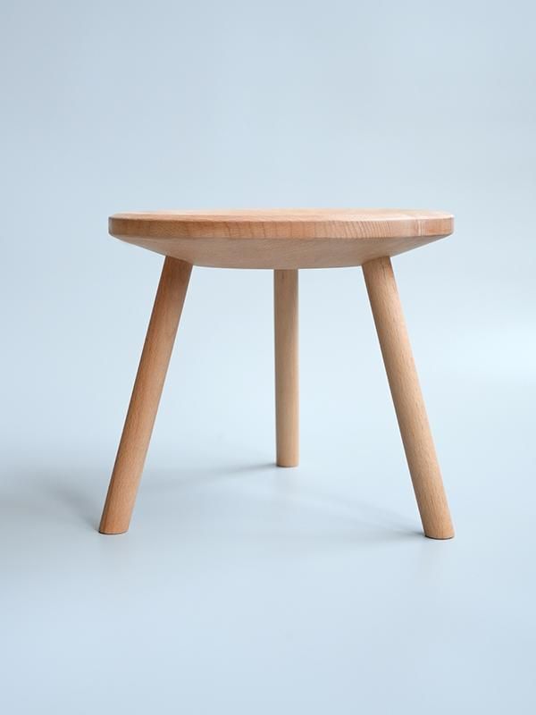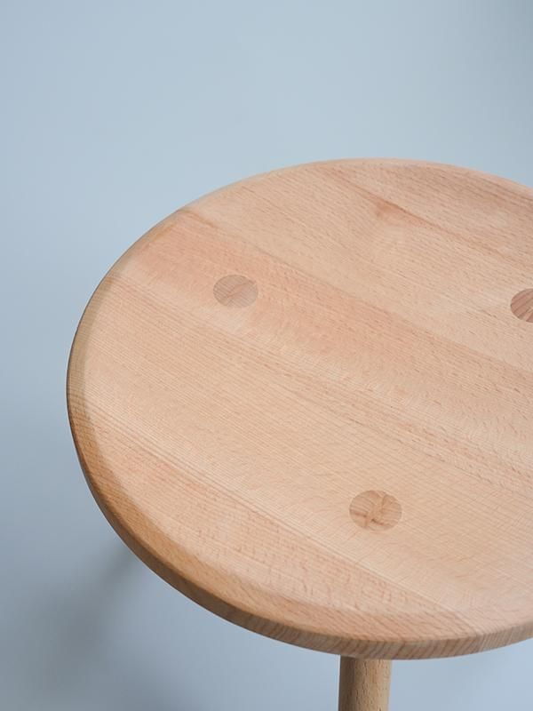 脚部分を座面に差し込んで固定する「くさび」の技法で作られており、非常にシンプルな構造です。三本脚のスツールはガタつきが少なく、色々な場所に手軽に移動して座る事ができます。