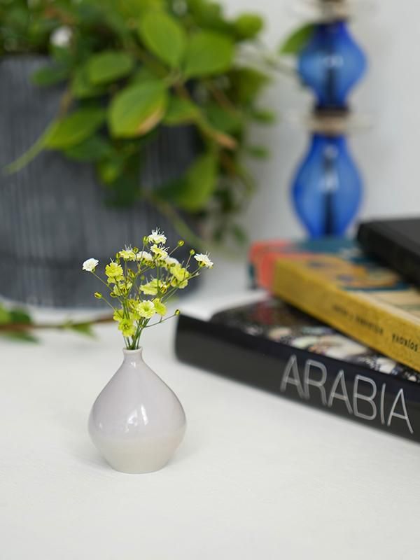口部分の直径が約4mmと狭いため、茎の細い草花を生けるのに適しています。小さな野花を一輪だけ挿し、窓辺やちょっとした隙間などに飾り置くのにぴったりです。