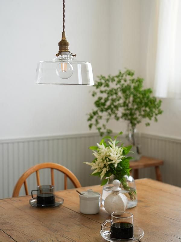 クリアタイプのシェードは光源が直接視界に入ると眩しく感じるので、吊るす高さや場所を工夫し、眩しく感じない位置に調整をして下さい。