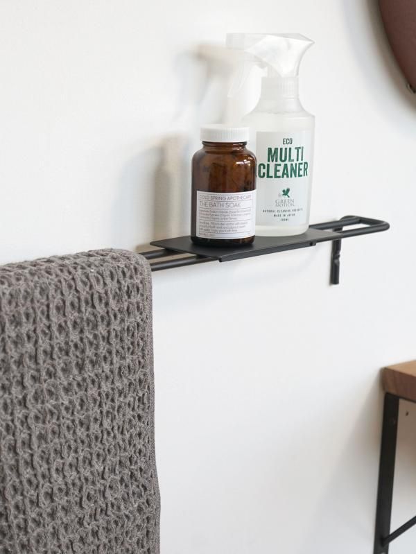 「ren ダブルラインレール」は、幅約68cmとワイドなレール型棚受けです。脱衣所の壁に設置してバスタオルやバスマットを掛けるタオルハンガーにしたり、キッチンで調理道具を引っ掛けるレールにしたりと様々な使い方ができます。